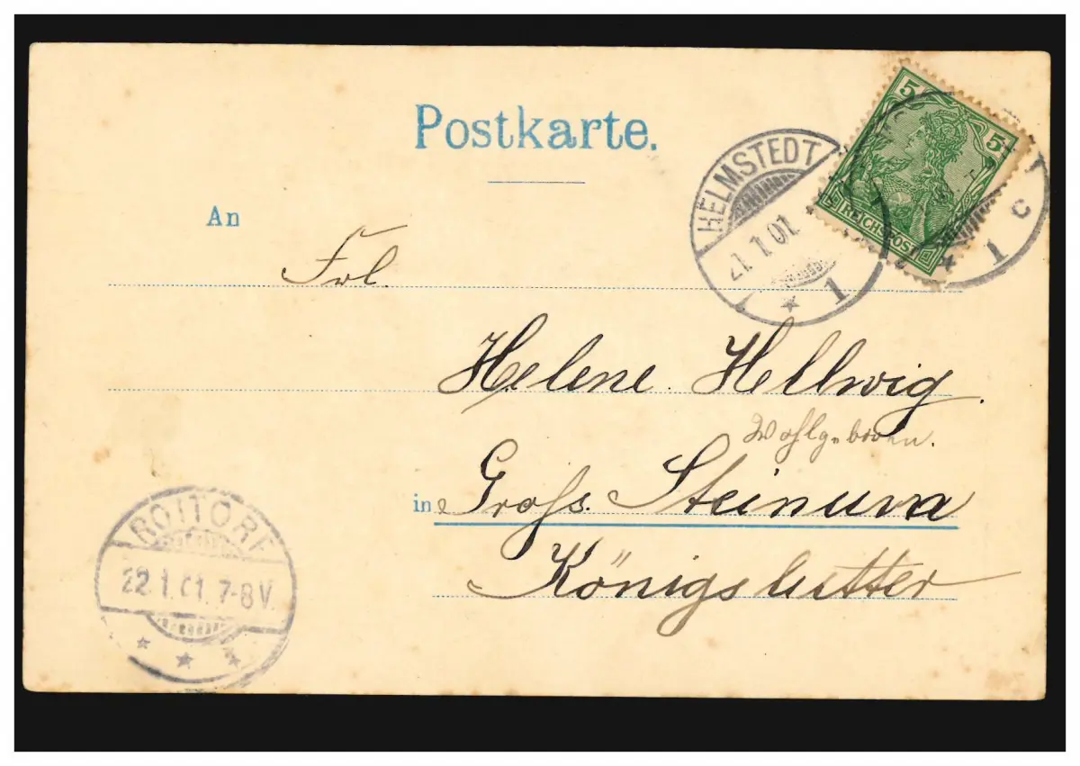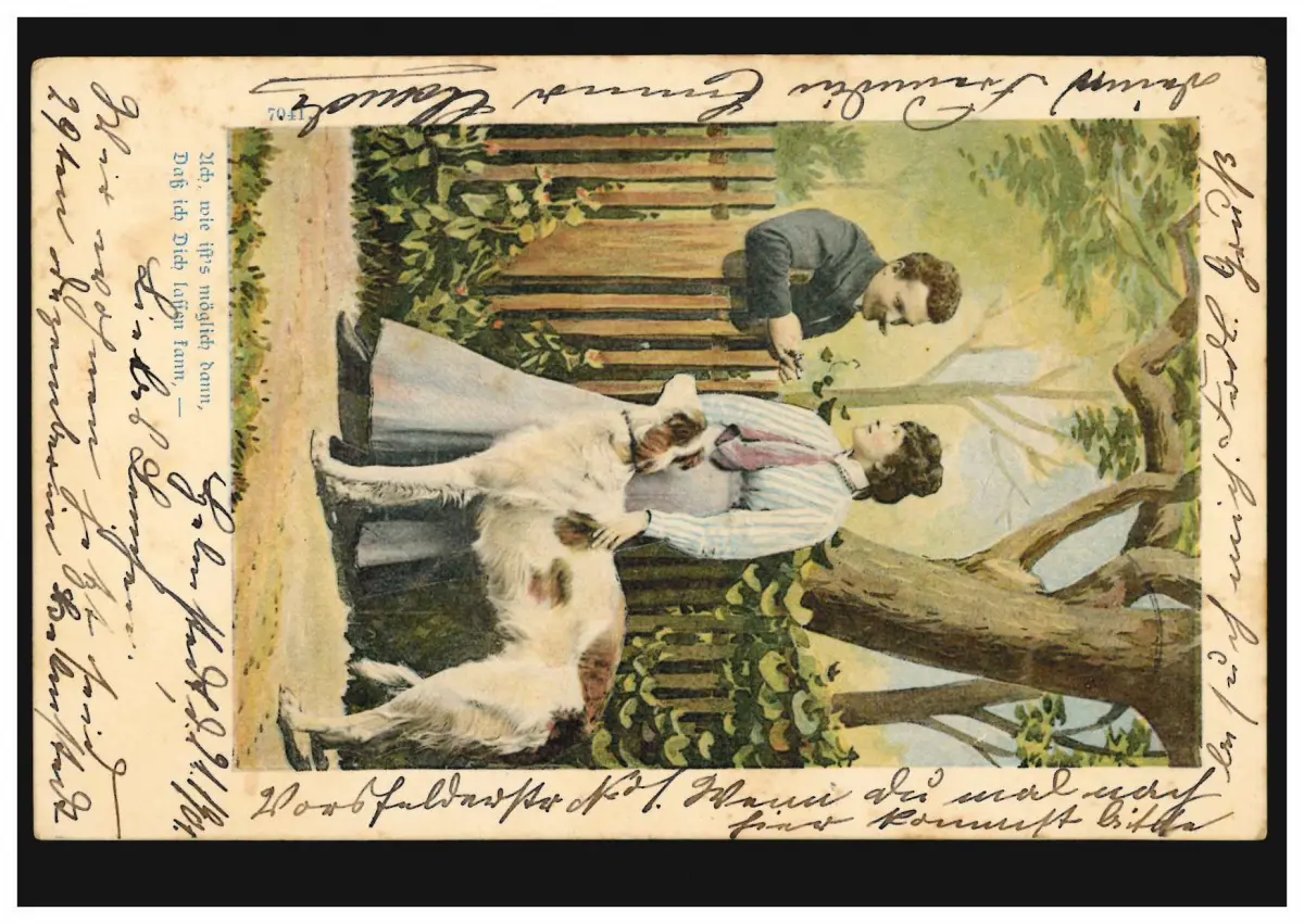 AK couple d'amoureux avec chien sur la clôture de jardin, HELMSTEDT 21.1.1901 selon ROTTORF 22.01.01