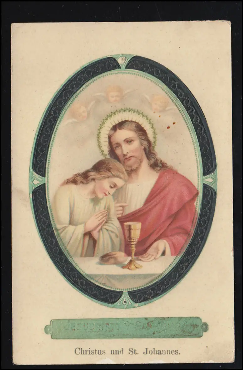 AK de la marque Christ et Saint Jean avec calice dans l'ovale, inutilisé