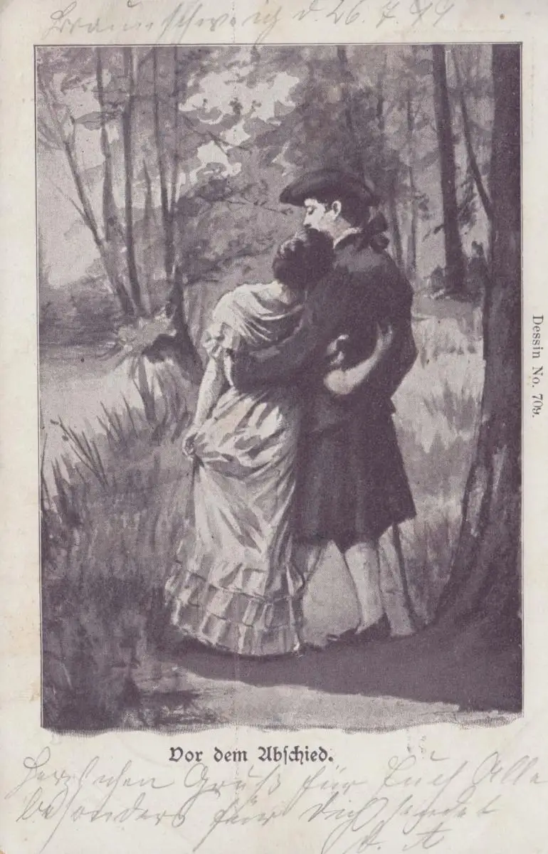 AK de l'amour: Avant le départ - Couple d'Amour dans les bois, BRAUNSCHWEIG 26.7.1899