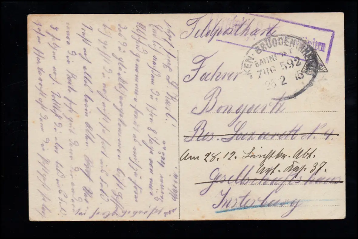 Tampon de censure KREFELD, Bahnpost DÜLKEN - BRÜGGEN ZUG 592 - 26.2.1915 Vérification: original Référence produit: 00000000045400
