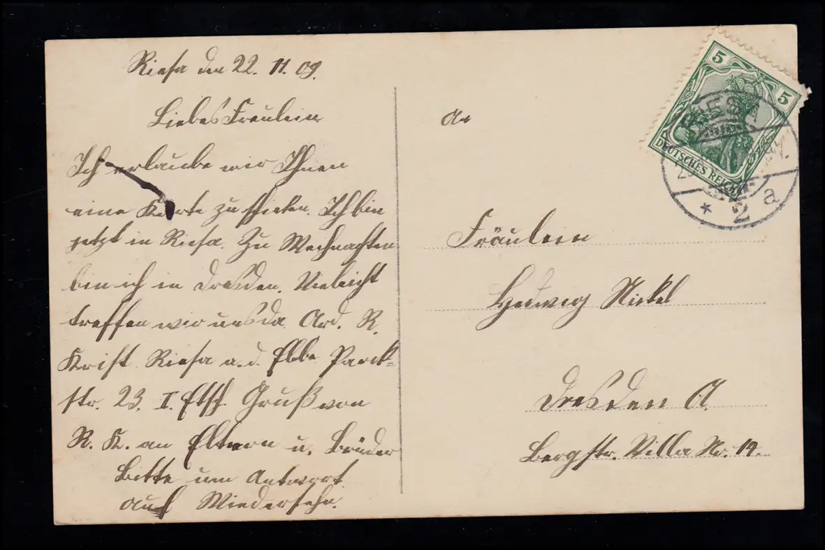 AK de l'amour: Le baiser sur la joue - Les Dix Mille Supérieurs, RIESA 23.11.1909
