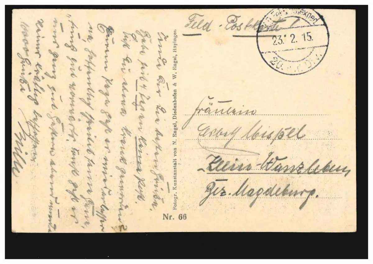 AK guerre Scène de guerre occidentale: Dun a. Maas détruit, poste de terrain 23.2.1915
