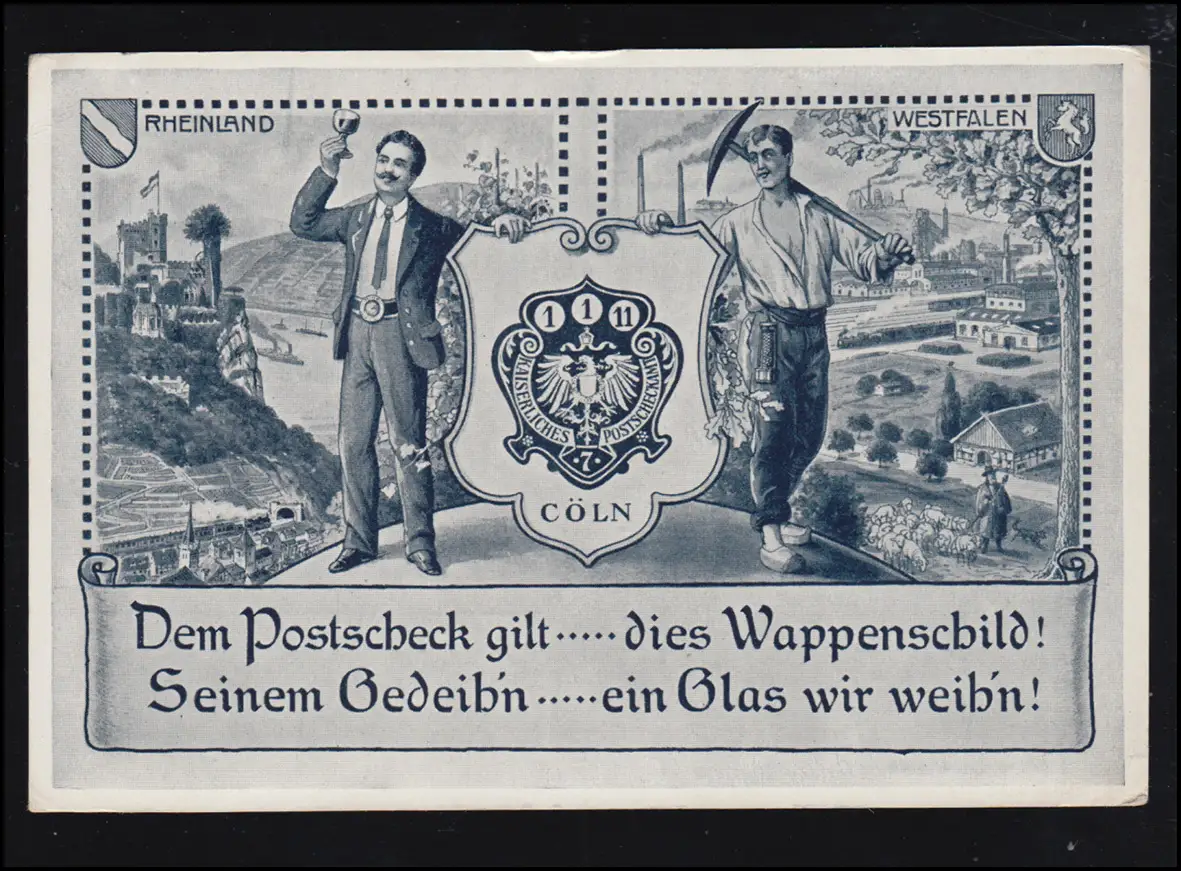AK impérial Postscheckamt Cöln Rhénanie Westphalie Wappenschild, inutilisé