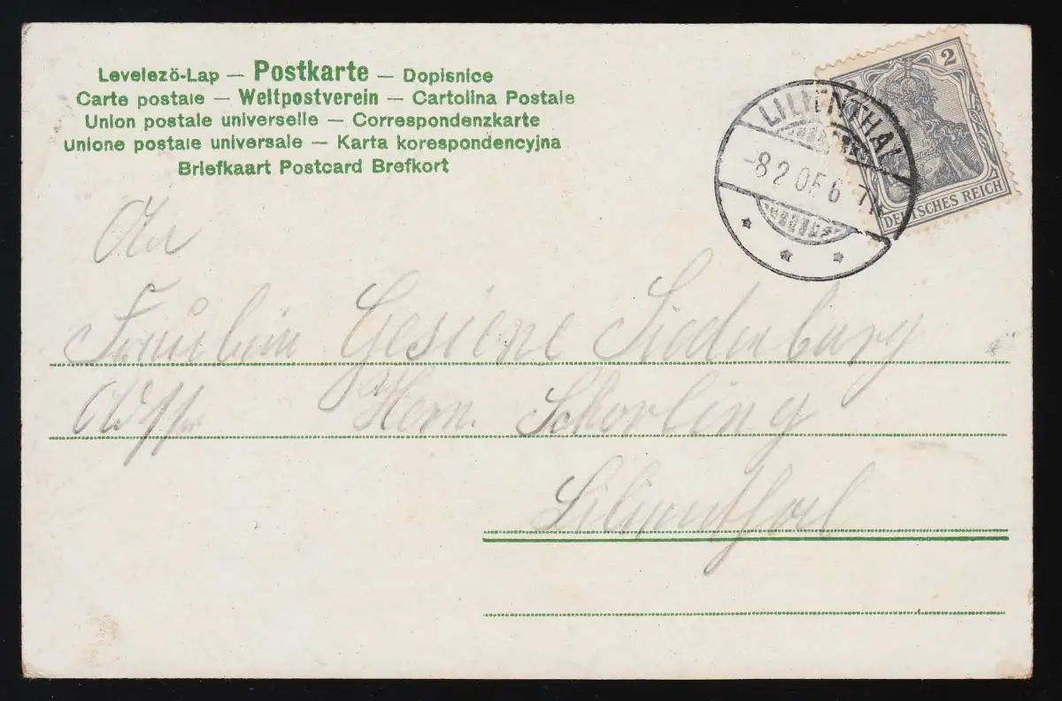 AK n° 181, Roses & N'oubliez pas de lire la lettre bleue " H ," Lilienthal 8.2.05