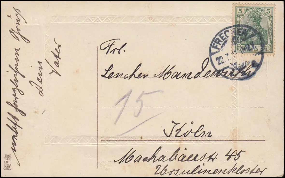 AK nom du chemin de fer apporte des roses, FRECHEN 22.7.1911