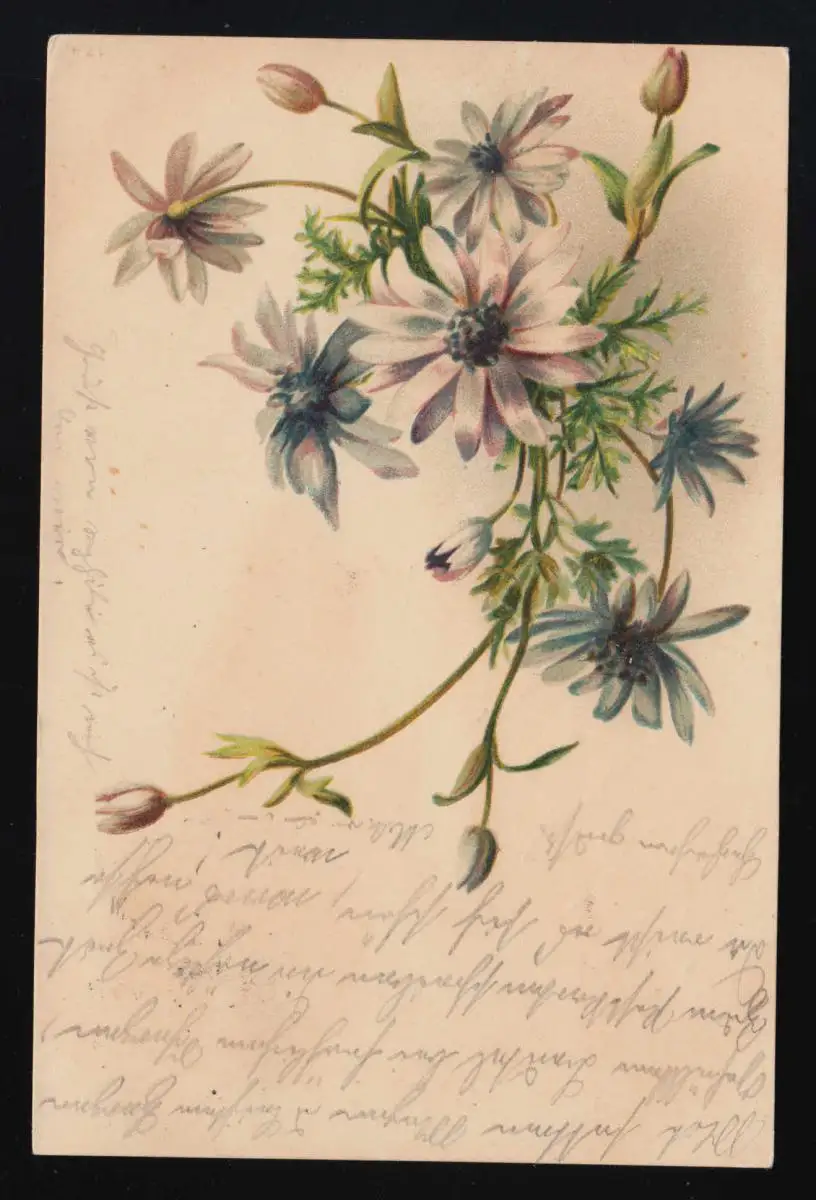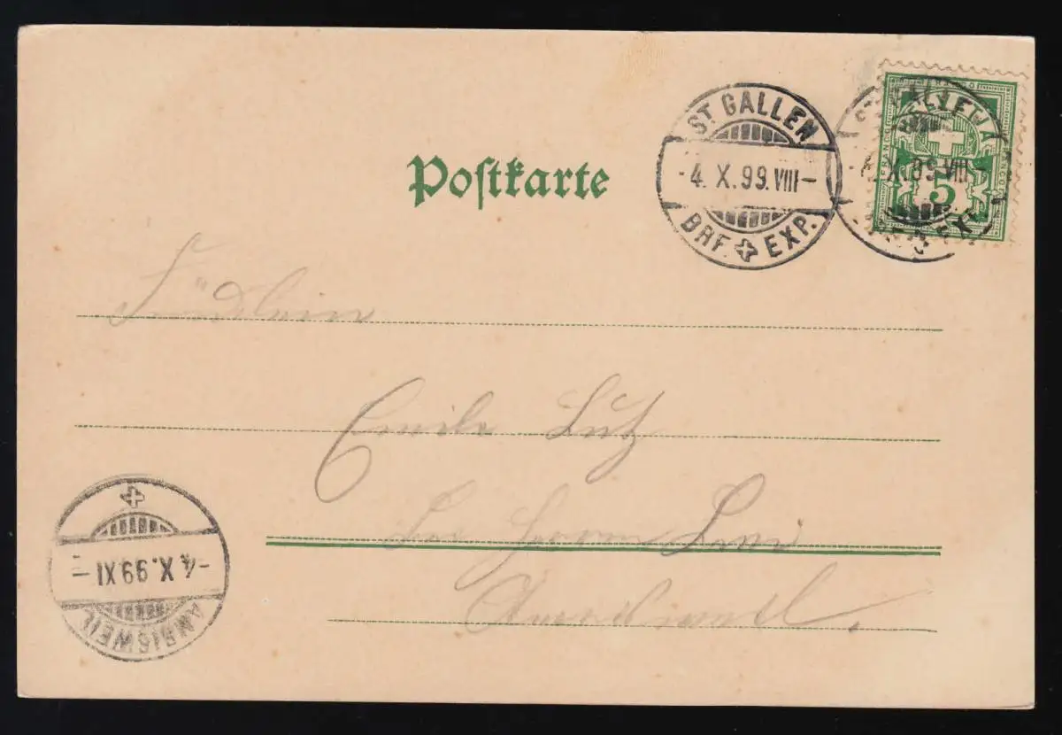 AK violet marguerites fleurs Bouqet, ST.GALLEN /AMRISWEIL Brf. Exp. 4.10.1899