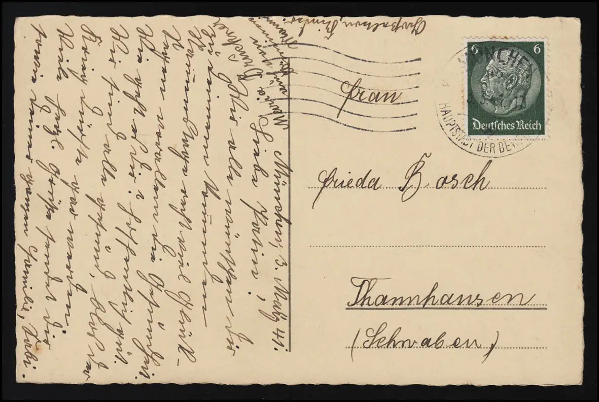 AK vœux pour la Journée de Nom - Roses, Fleurs, MUNICH 3.3.1941
