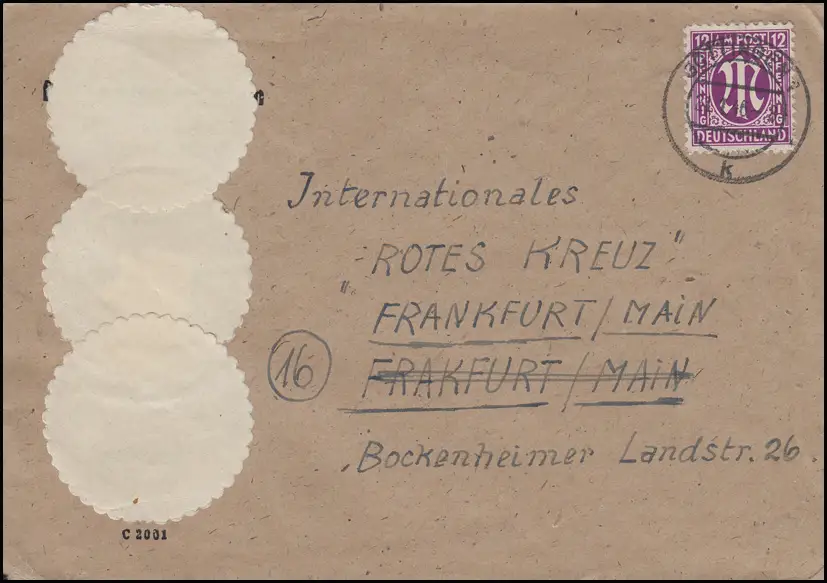 AM-Post 12 PFE sur lettre GÖTTINGEN 21.1.46 à la Croix-Rouge à Francfort/Main