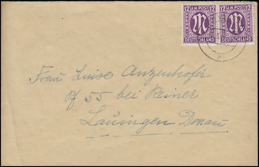 AM-Post 12 paire MeF Fern-Lettre de VIERSEN 16.3.46 à Lauingen/Danube