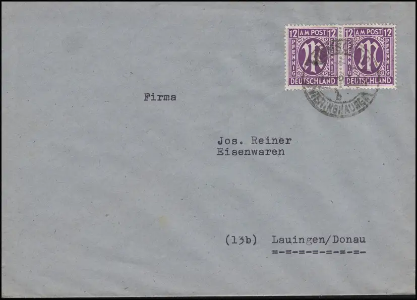 AM-Post 2x 12 Pf. MeF Lettre à distance REMSCHEID-VIERINGHAUSEN 5.3.46 vers Lauingen
