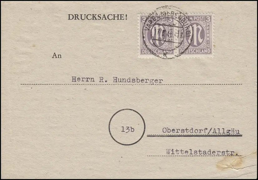 AM-Post 2x 3 p. paire MeF Dossier d'impression VAREL (OLDENBURG) 17.5.46 vers Oberstdorf