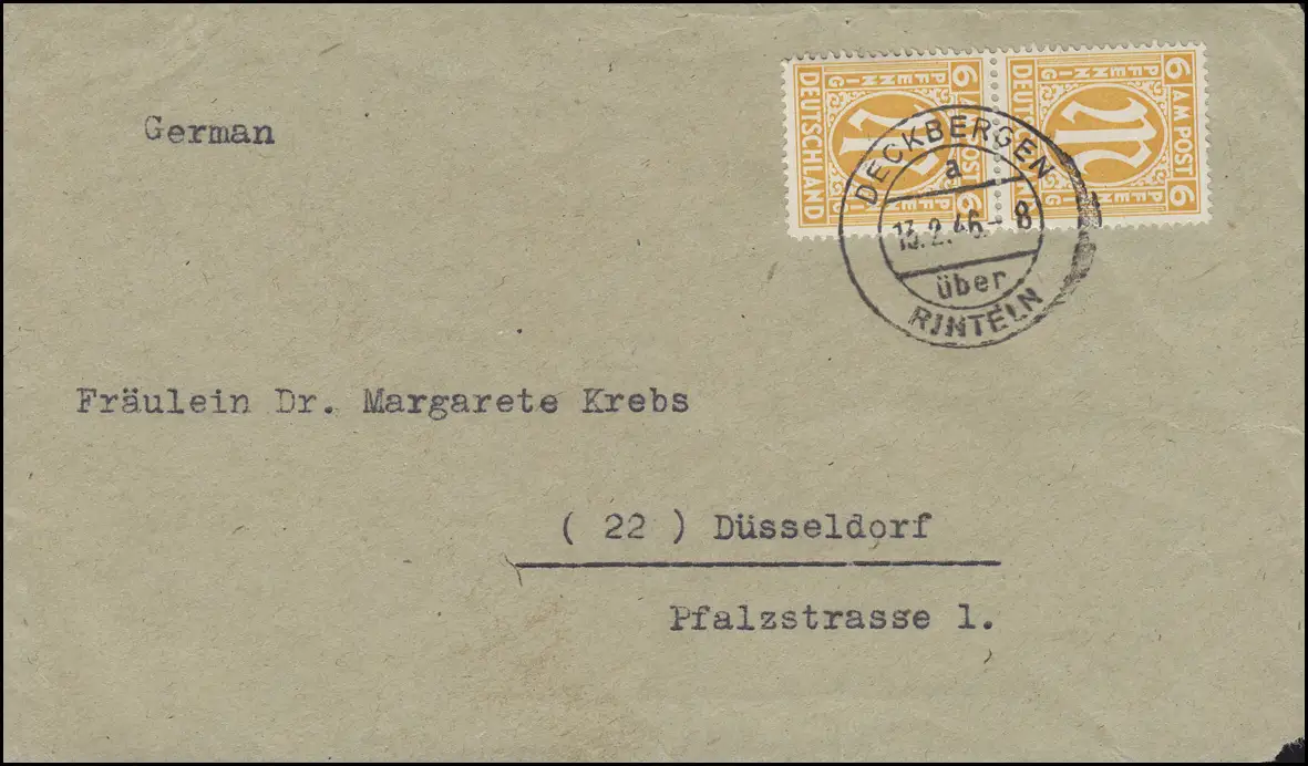 AM-Post 6 Pf. MeF sur la liste des bureaux de vente DECKBERGEN sur RINEL 13.2.1946