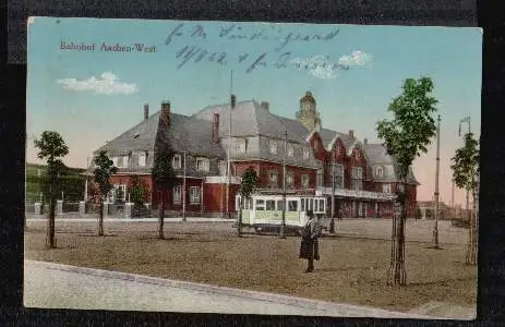 Aachen. Bahnhof Aachen West - Feldpost 1916. (NPLZ 52080, Straßenbahn, Eisenbahn)