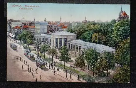 Aachen. Restaurant Elisebrunnen - Gelaufen 1911. Briefmarke abgefallen. (NPLZ 52080)