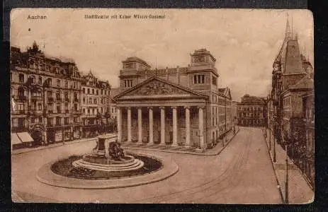 Aachen. Stadttheater mit Kaiser Wilhelm Denkmal - Gelaufen 1915. (NPLZ 52080)
