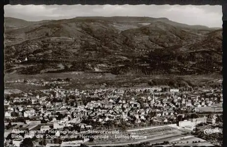 Achern. An der Hornisgrinde im Schwarzwald. Blick über die Stadt auf die Hornisgrinde, Luftaufnahme - Nicht gelaufen. (NPLZ 77855).