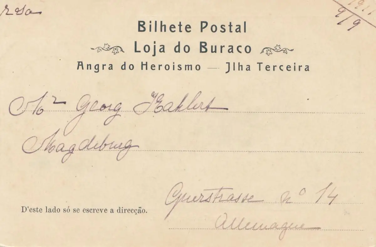Acores 1905: post card Ilha Terceira to Magdeburg