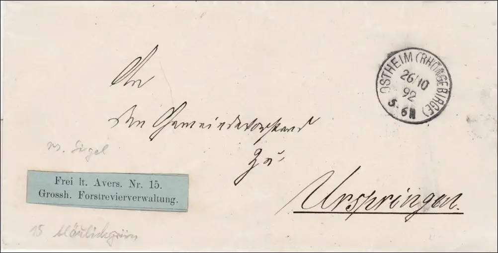 Forstrevierverwaltung Ostheim nach Urspringen 1892