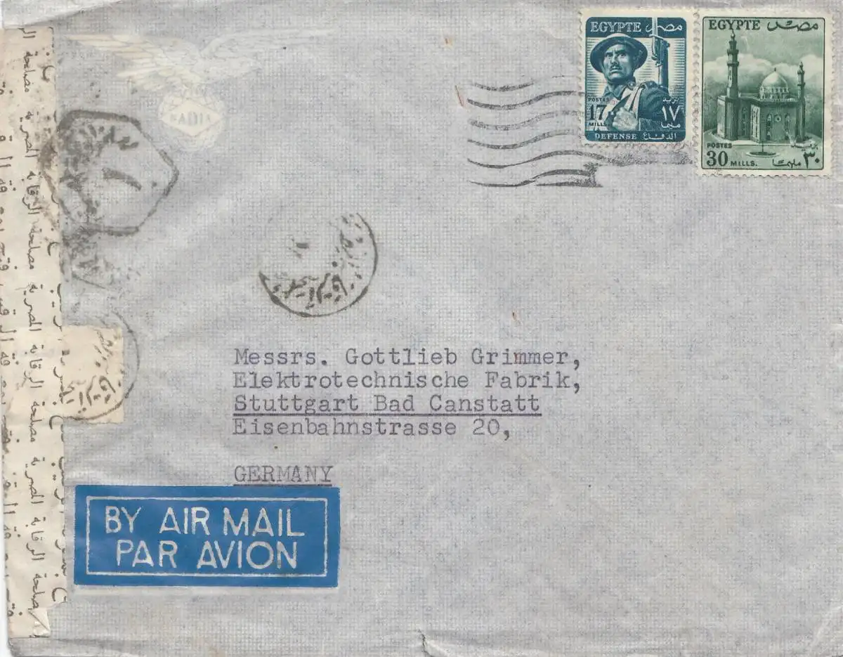 Egypte/Egypte: 195x: Lettre comme courrier aérien à Stuttgart, censure