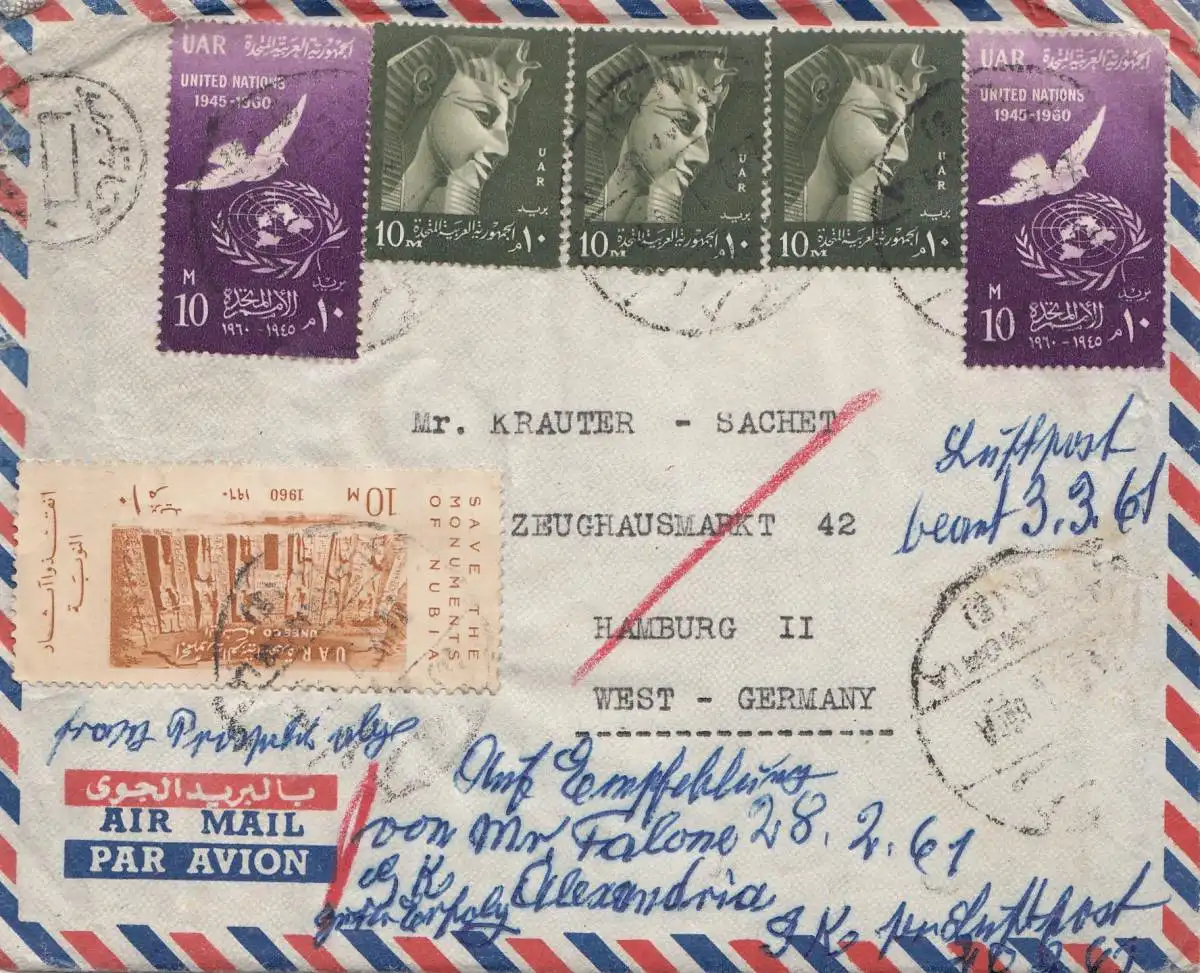 Egypte/Egypte: Aéroport d'Alexandrie à Hambourg, contenu du courrier