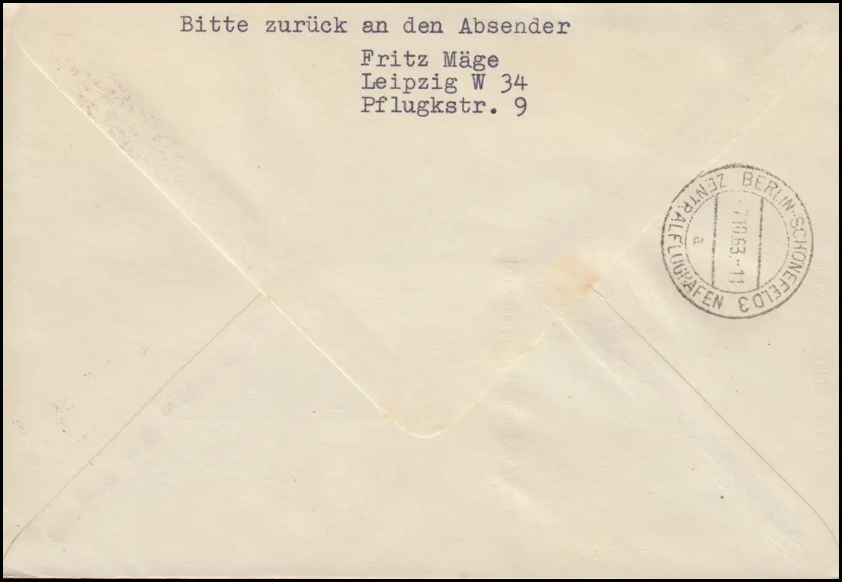 Aéroposté INTERFLUG Leipzig-Berlin Bijoux B.S. LEIPZIG Ecole d'ingénieur 12.9.63