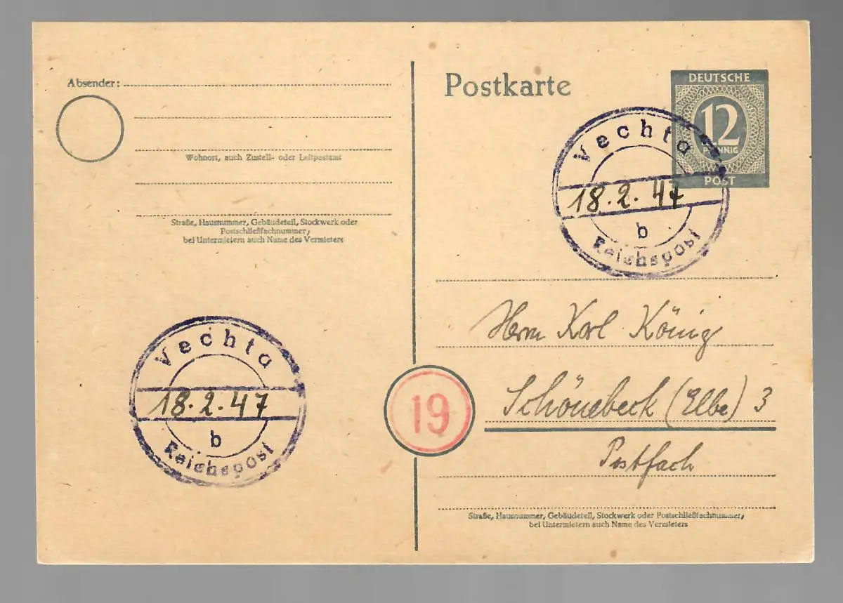Affaire 1947 Vechta-b, poste du Reichspost, cachet rare