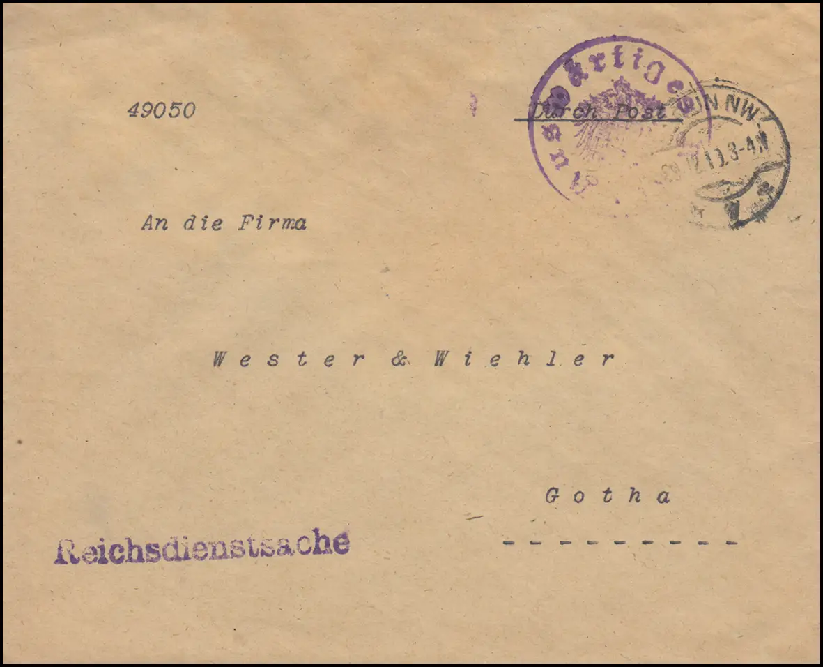 Affaire Reichsservice Office des affaires étrangères Lettre BERLIN 29.12.19 à Gotha