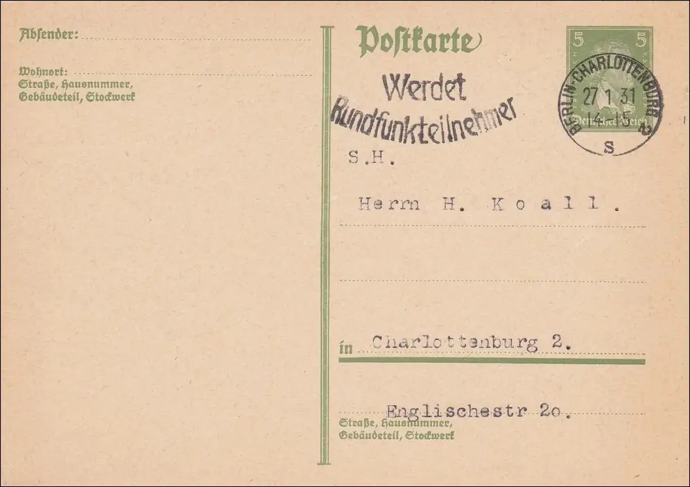 Affaire complète de Berln Charlottenburg, timbre publicitaire, 1931