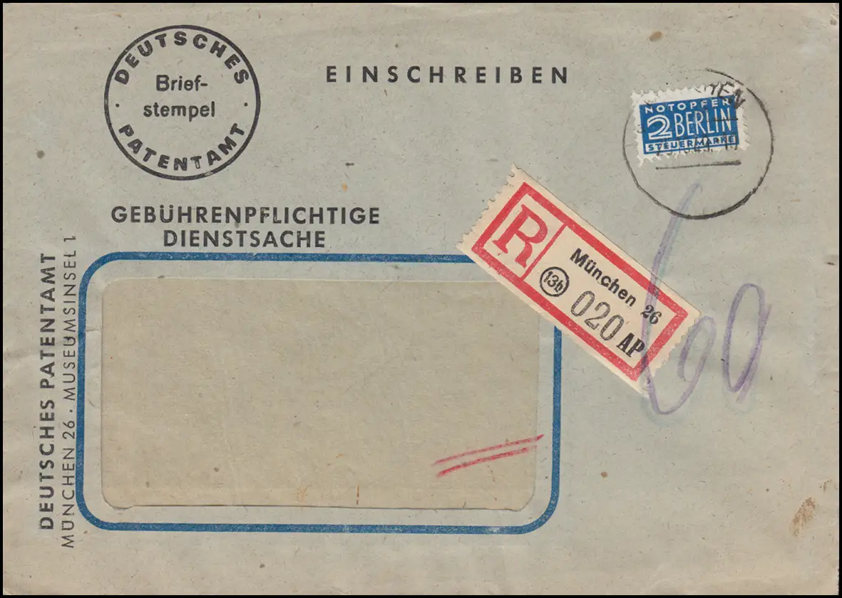 Affaire de service à payer Office allemand des brevets MÜNCHEN 25.10.1949