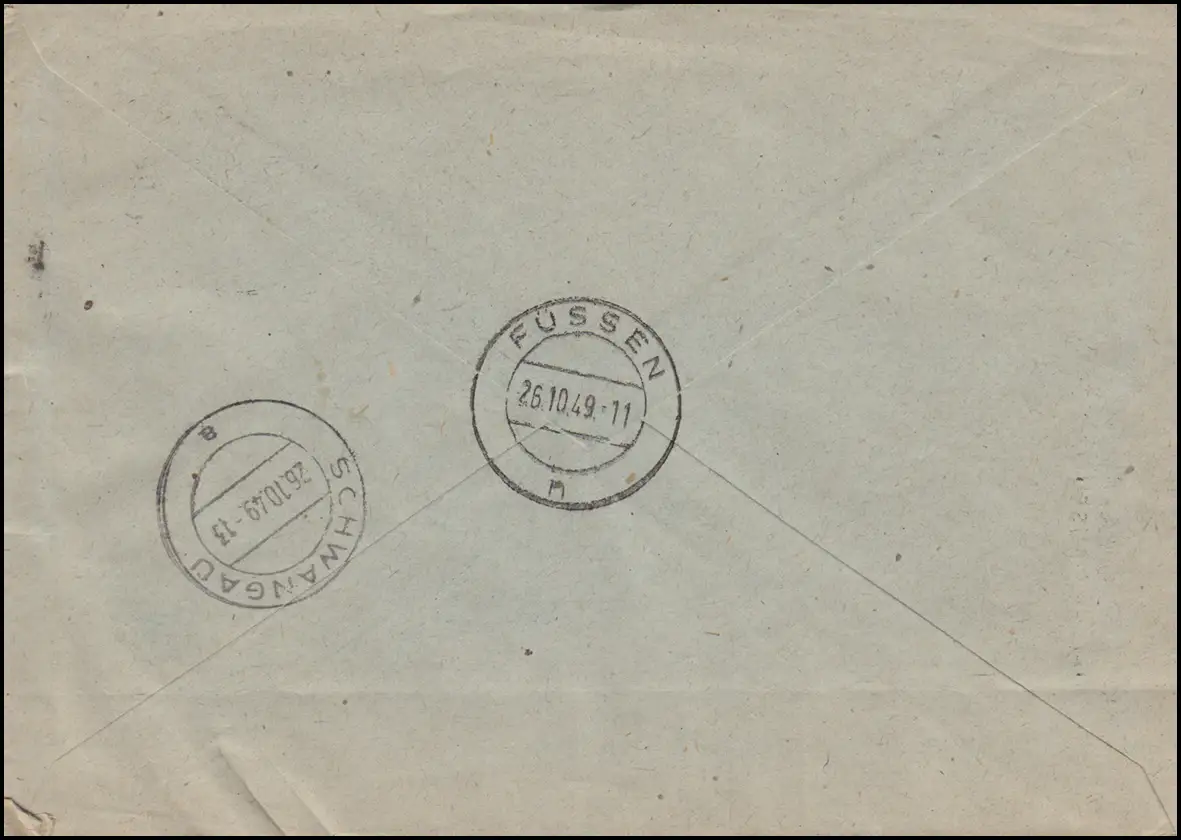 Enveloppe recommandé / lettre de fenêtre avec marque Norsperbe et cachet quotidien avec copie au bureau de poste de Munich 26 via EXISTER 26.10.49 vers SCHWANGAU 26.1049, avec postporto. Contrôle: original Référence produit: 00000000014740>P>Remarque: Cet article n'est disponible qu'une seule fois. Vous recevrez exactement l'article représenté.