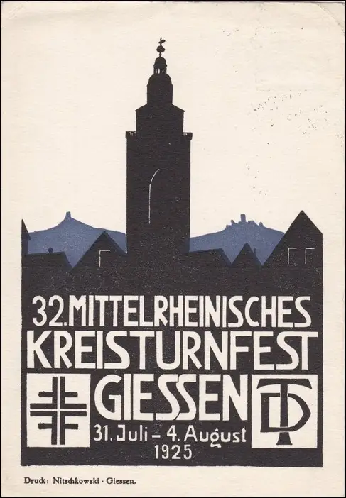 Affaire entière Mitteldeutsche Kreisturnfest Giessen 1925 avec le cachet spécial