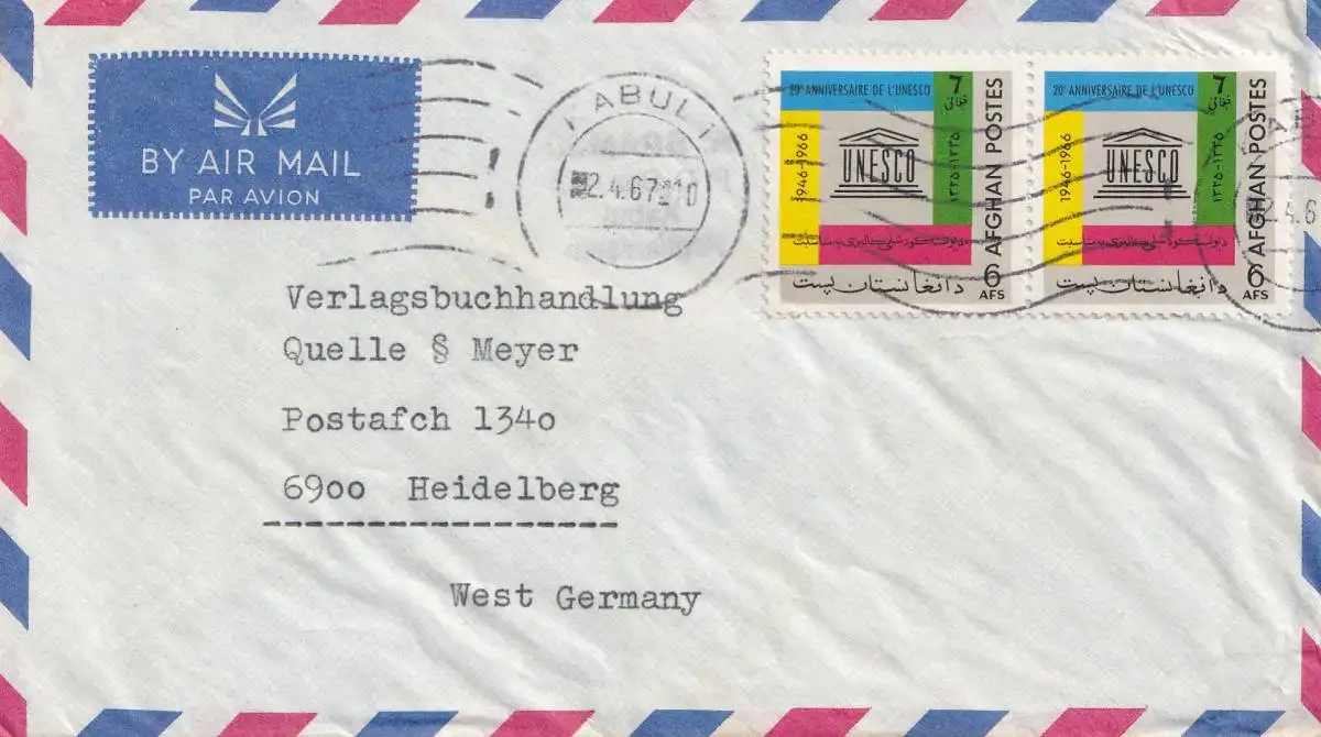 Afghanistan: Kaboul 1957, 2 covers to Heidelberg 1962/67
