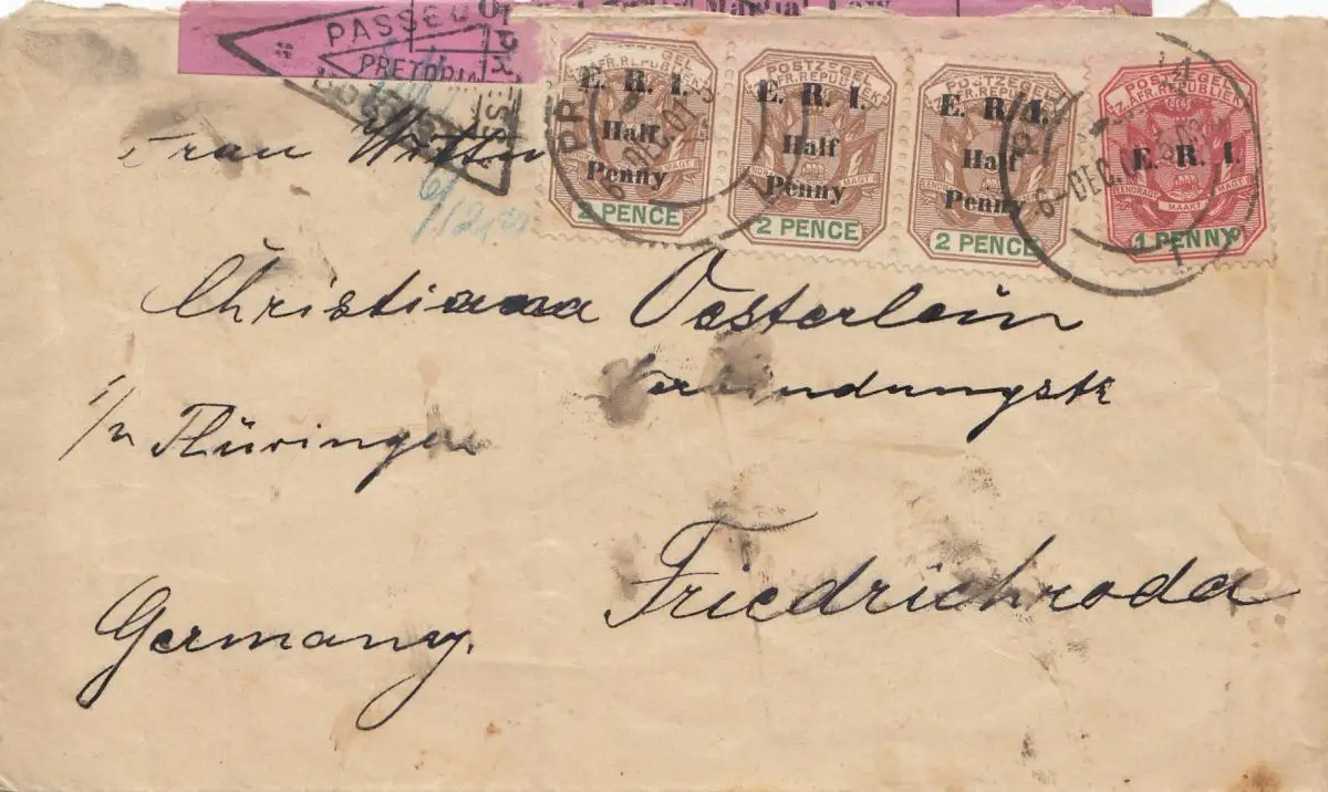 Afrique du Sud 1911: letter Pretoria to Friedrichsroda, cessor