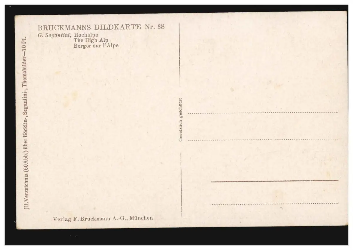 Carte photo de Bruckmann 38 Segantini-Bild: The High Alp Test: original Référence produit: 00000000024360