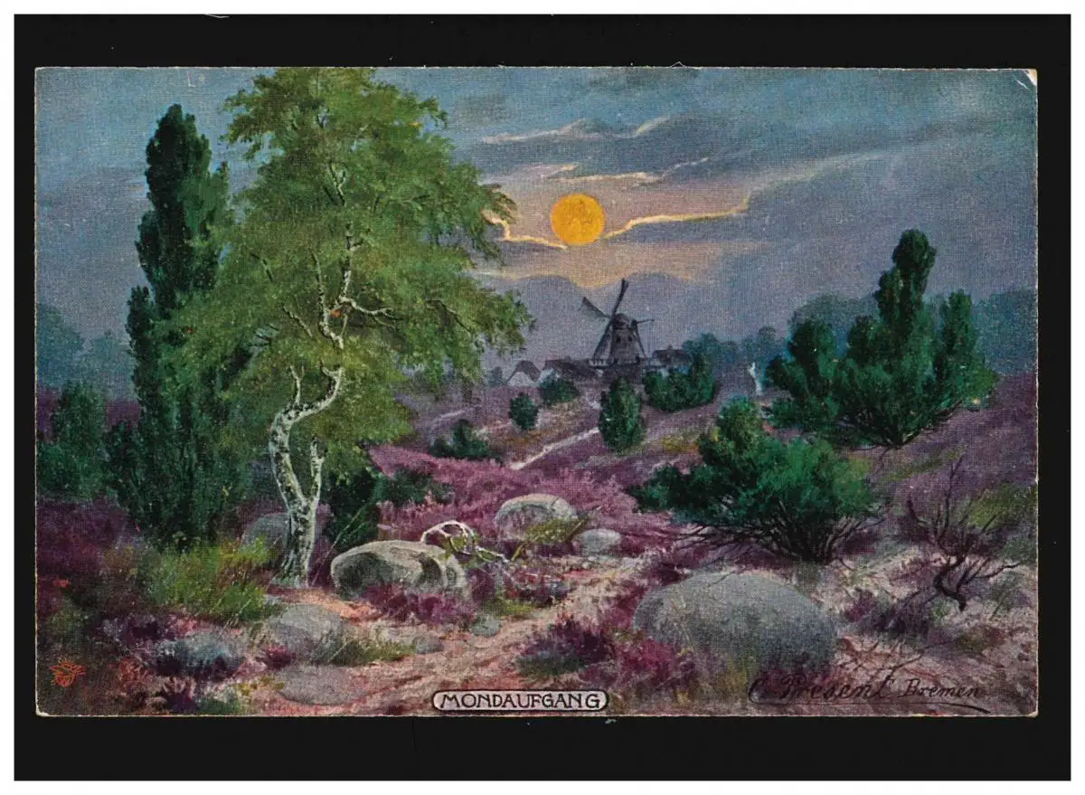 Agriculture Le lever de la lune Landes Windmühle, La lande allemande, inutilisé