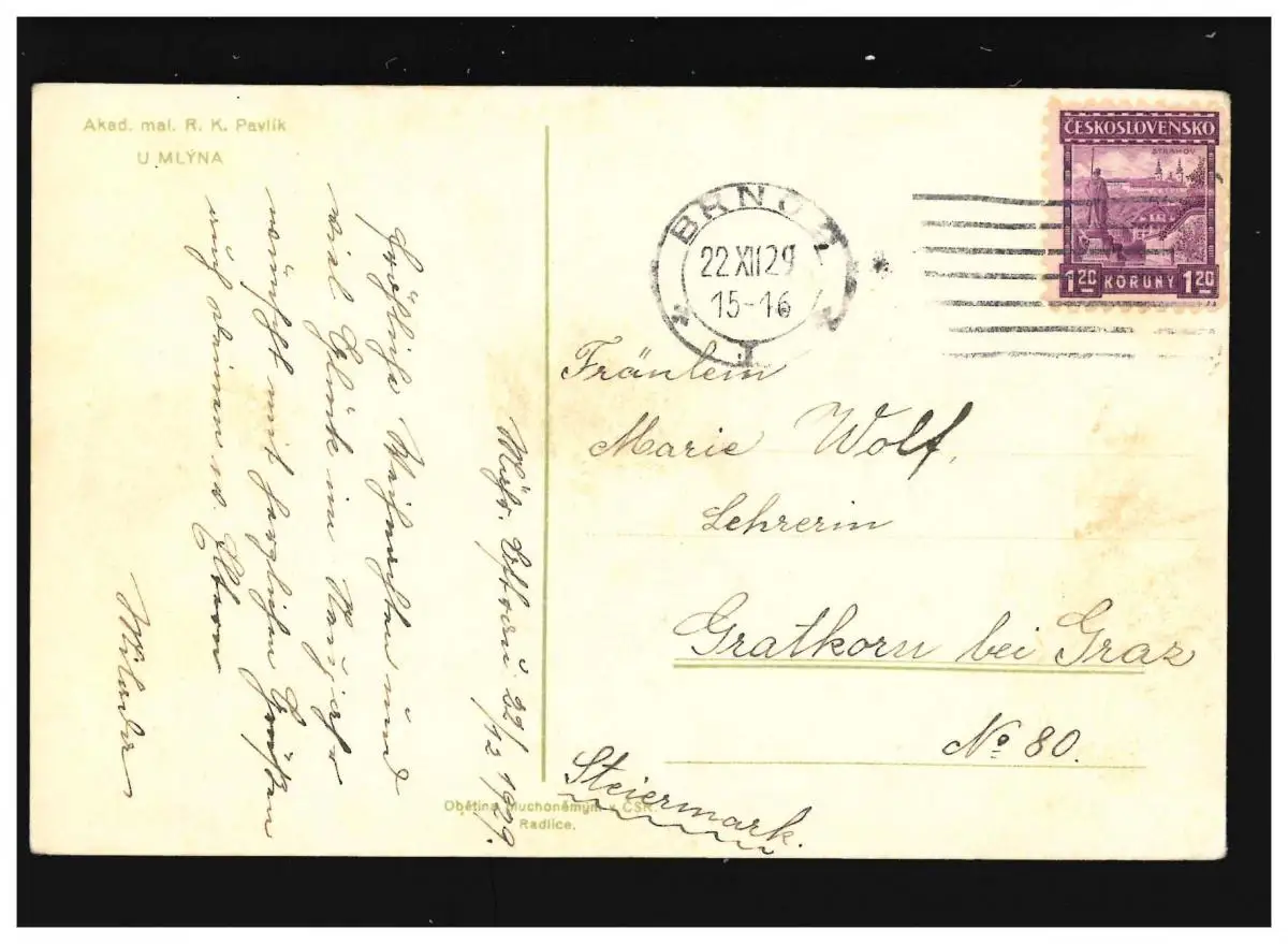 Agriculture Moulin d'eau Rivière Paysage Weide Ferme, Brno 22.12.1929