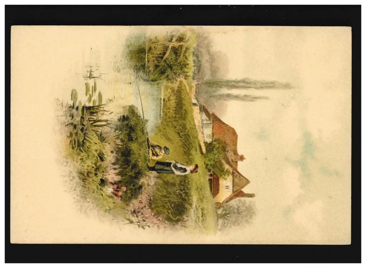 Agriculture ferme rivière enfants pêche prairie piéton fleurs, non utilisés