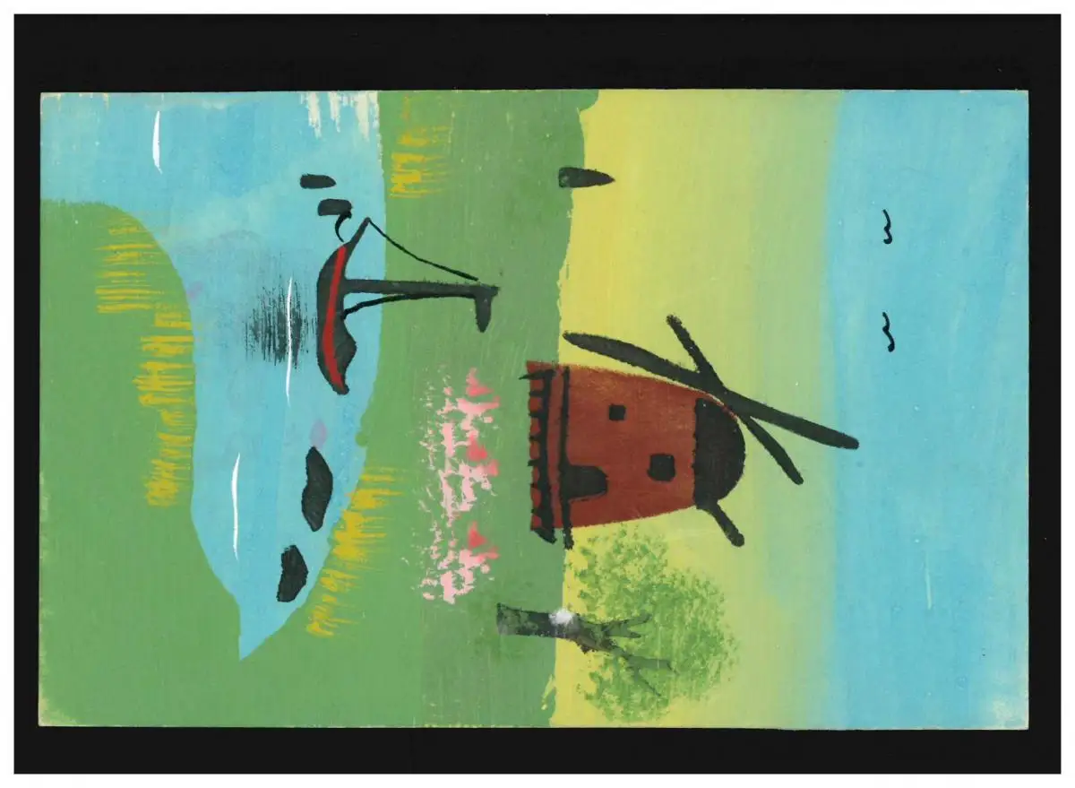 Agriculture moulin à vent moulin bateau prés arbres carte d'art, non utilisé