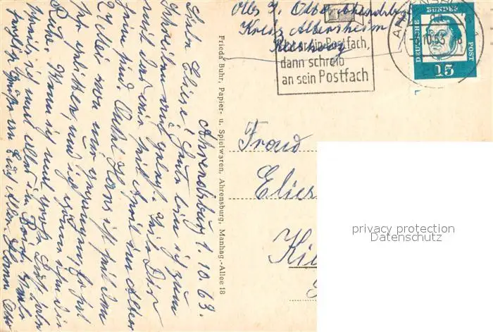 Ahrensburg Schloss Altersheim Kirche mit Gottesbuden Ahrensburg postalisch gelaufen 1963 Erhaltung siehe scans [WerneD78] WernPID7