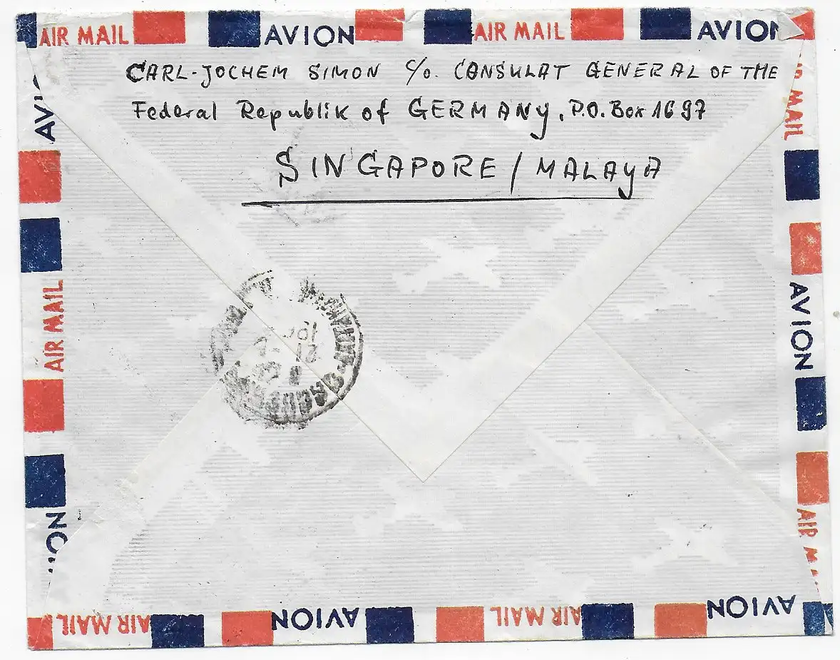 Pour plus d'informations voir Scan: Consulat allemand Singapore/Malaya Brieb / carte est entièrement reçu, Scannée coupe de temps en temps à 1-2mm. Référence produit: 7055394 Vérification: original Référence article: 00000007055394