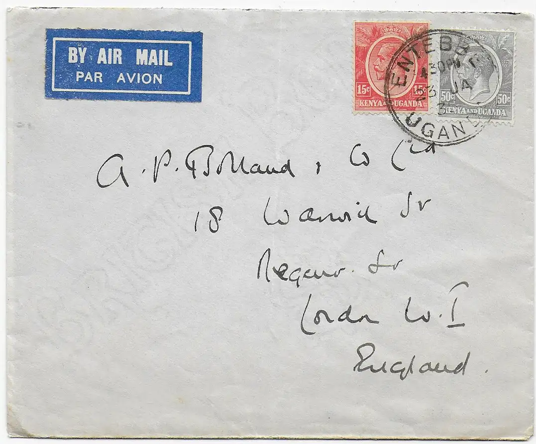 Air mail Ouganda: Entebbe 1935 pour Londres