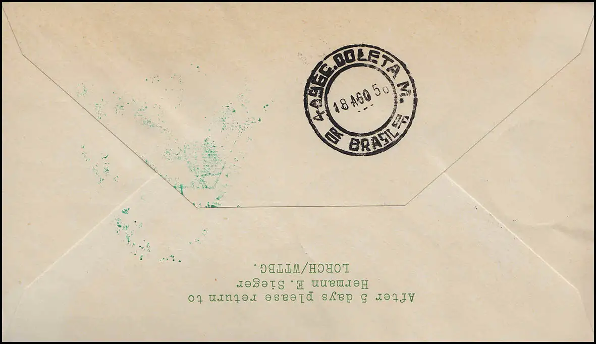 Porté avec cachet en VERT sur le devant, SEC.DOLETA M. BRASSIL 18. AGO.56 Tampon d'arrivée en noir Au dos. Contrôle: original Référence de l'article: 00000000014933