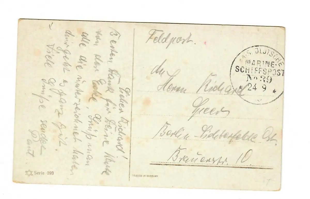 Ak Sendrot am Meer, Marine Schiffpost No. 39 comme poste de terrain à Berlin, 1915