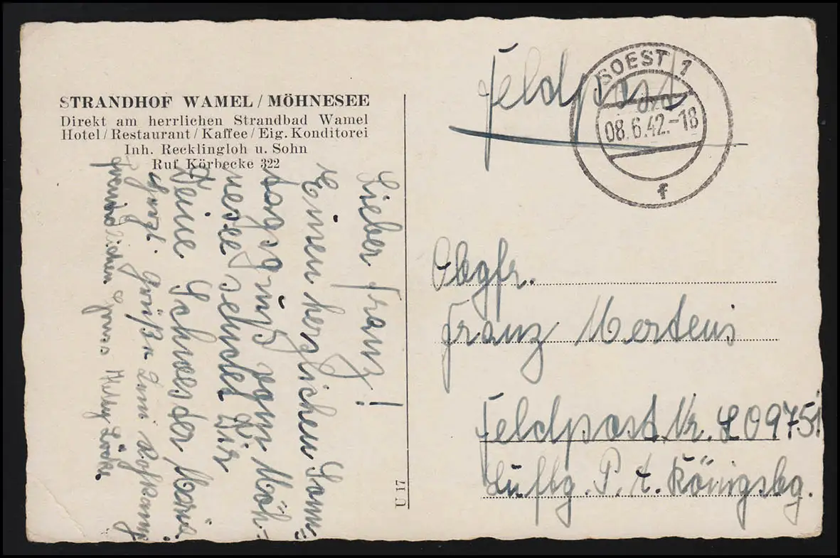 Allemagne AK Photo Ambiance du soir au Möhnesee Strandhof WAMEL, SOEST 8.6.42