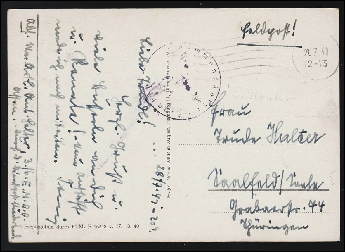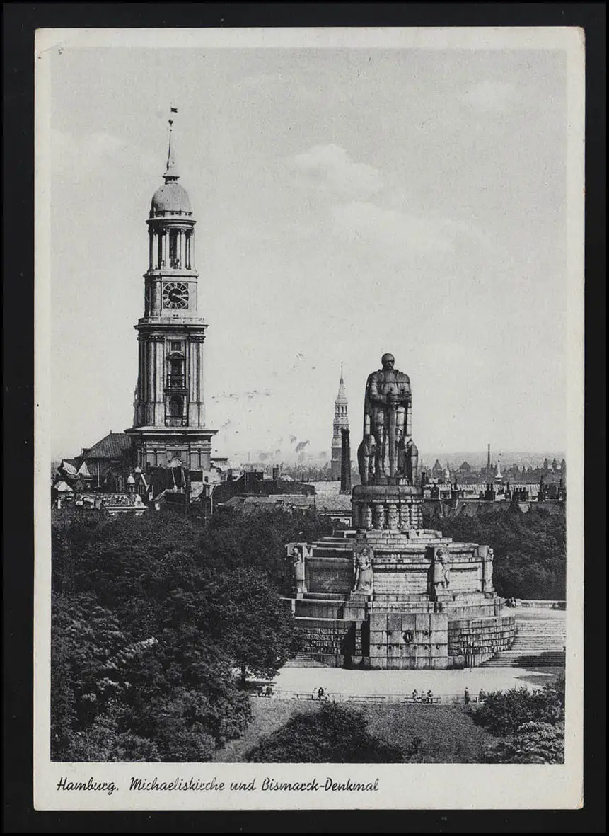 Allemagne Micholiskirche Bismarck Monument HAMBURG Feldpost 29.7.40