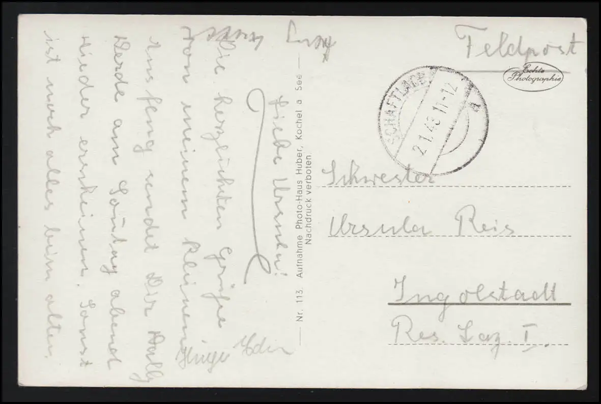 Allemagne Photo Kappler Alm bei GMUND Tegernsee Feldpost ANDSCHLACH 2.1.1943