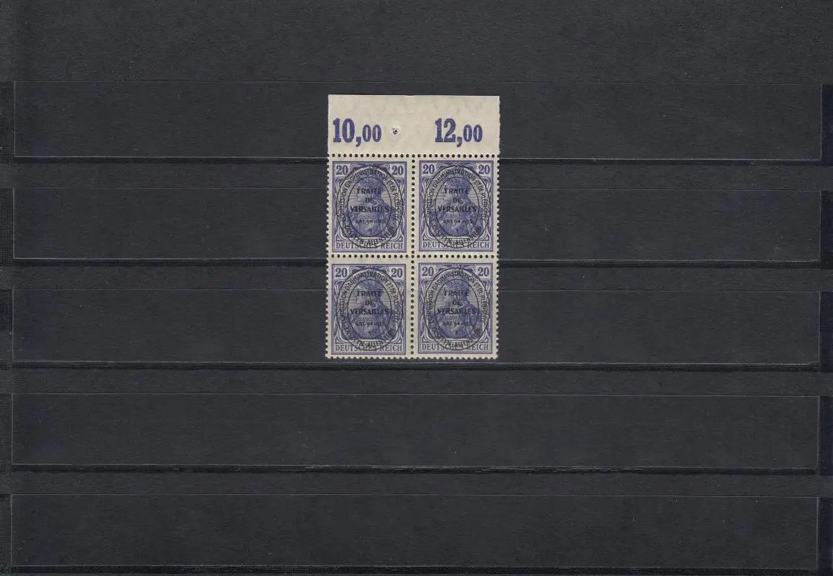 Allenstein MiNr. 19a, 4 bloc, frais post-alpin, signature BPP, plaque