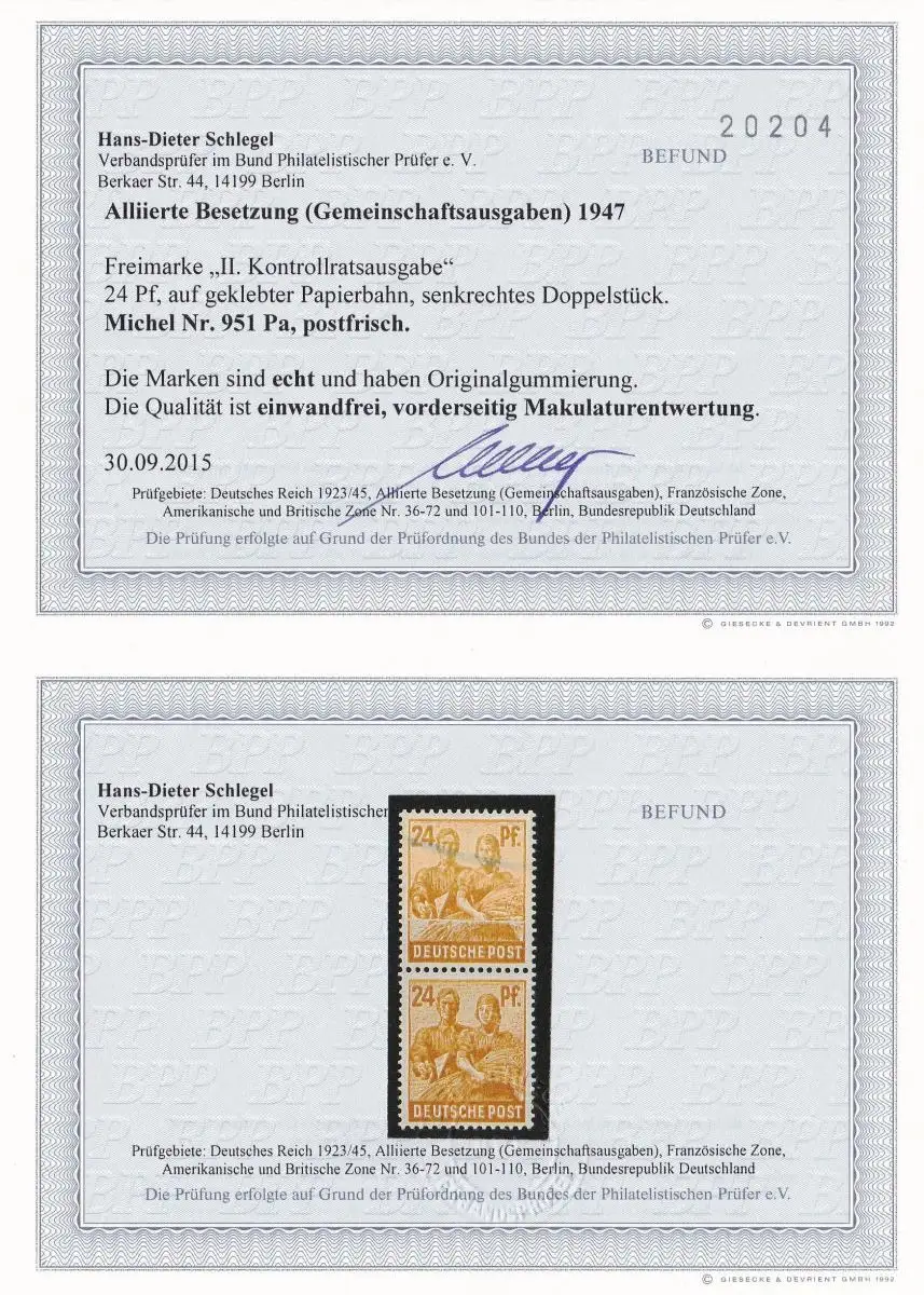 Instrumentation alliée: Mi Nr. 951 Pa, **, papier collé, BPP résultat
