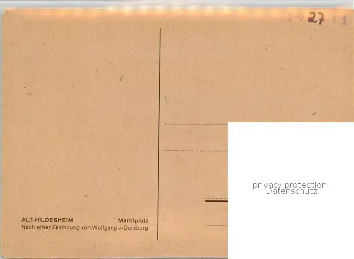 Alt_Hildesheim Altstadt Fachwerkhaeuser Brunnen Marktplatz Zeichnung Wolfgang von Duisburg Kuenstlerkarte Alt_Hildesheim postalisch nicht gelaufen 1921-1965 Erhaltung siehe scans [FriedD77] Frierer