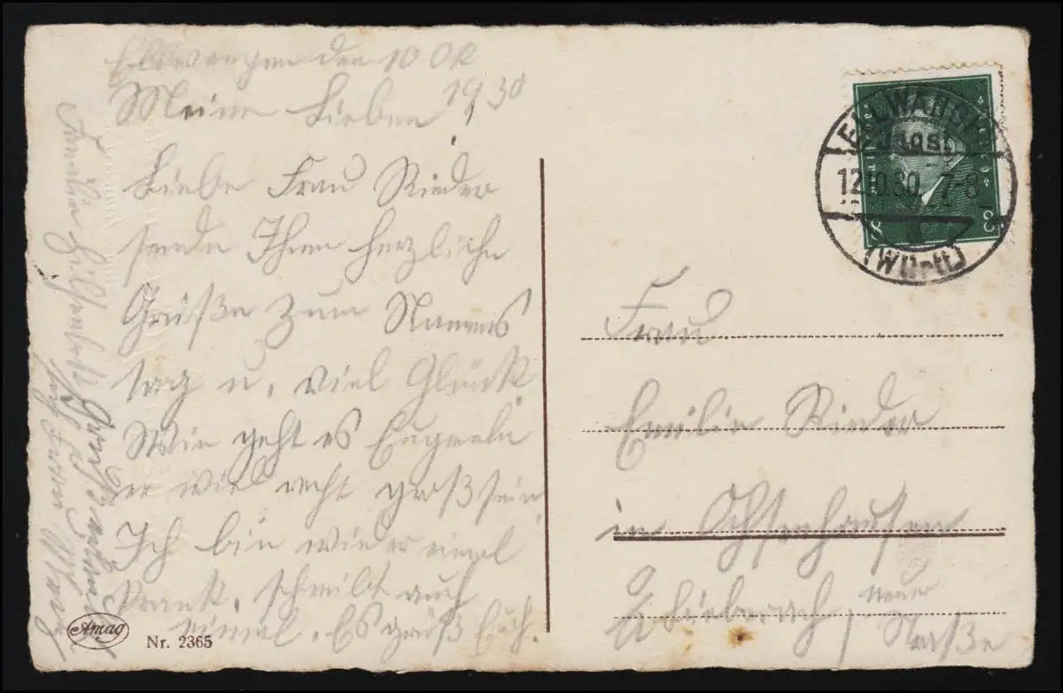 Amag AK Nr. 2365 Bunter bouquet fleurs pour la journée de nom, ELLWANGEN 12.10.1930